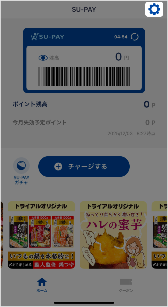 SU-PAYアプリを起動すると、登録の完了が確認できます。