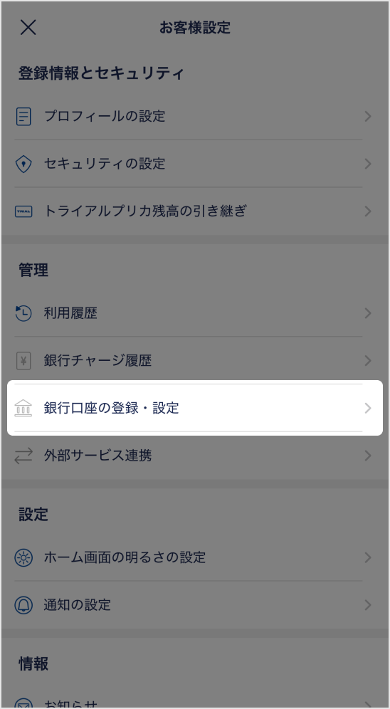 「銀行口座の登録・設定」をタップしてください。