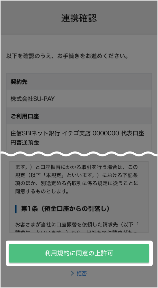 登録情報を確認のうえ、「利用規約に同意の上許可」を選択してください。